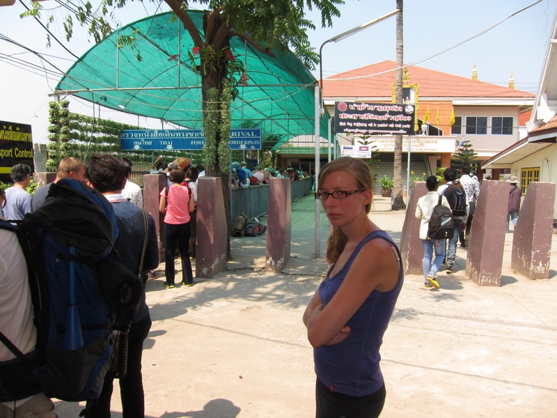 Ça nous rappelle un peu le passage de la frontière entre la Thaïlande et le Cambodge… Un souvenir inoubliable ! A ce propos, j’avais oublié à l’époque de vous montrer cette photo, preuve que le passage de la frontière n’est pas des plus agréable… LOL !