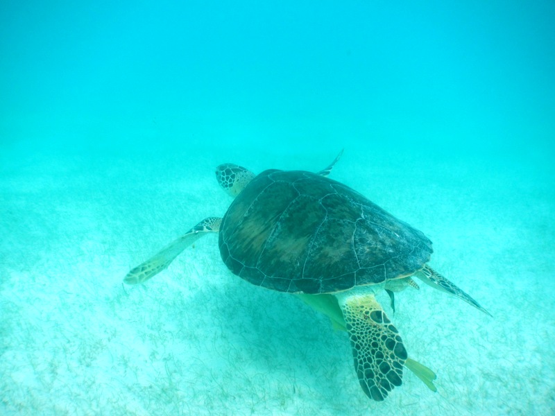 Pour commencer, nous avons réservé une petite surprise à Catherine. Une rencontre qui, je l'espère, restera gravée dans sa mémoire. Après avoir pris le collectivo jusqu'à Akumal, nous avons eu le plaisir de nager avec trois magnifiques tortues pas farouche du tout. Nous avons pu nager autour d'elles tranquillement, les observant en plein déjeuner. Durant nos plongées, nous avons du en croiser plusieurs dizaines mais c'est toujours aussi agréable de les contempler.