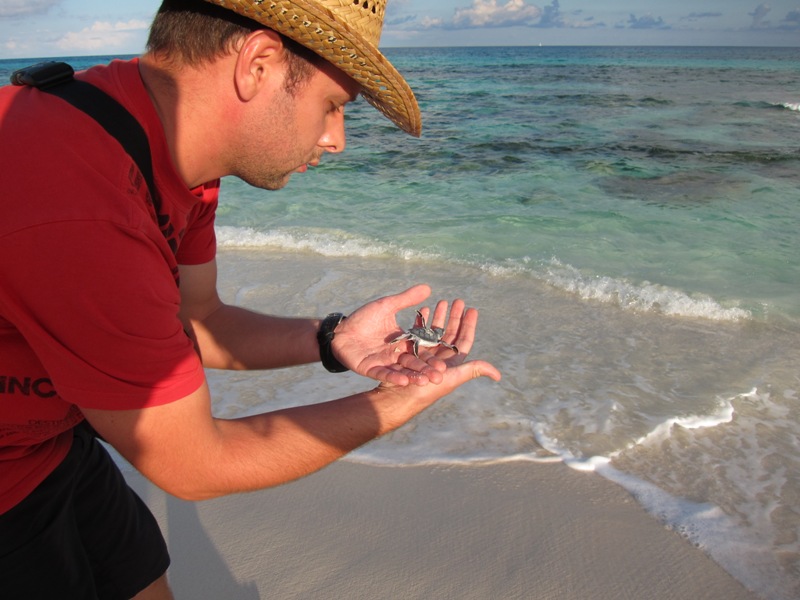 Astrid a trouvé une bébé tortue en train d’agoniser en plein soleil les quatre fers en l’air… Nous sommes intervenus sans attendre, j’étais prêt pour le bouche-à-bouche et le massage cardiaque mais ça n’a pas été nécessaire… Il suffisait de la remettre gentiment à l’eau pour qu’elle retrouve ses esprits.
