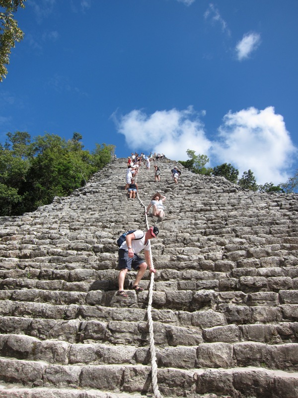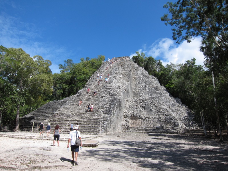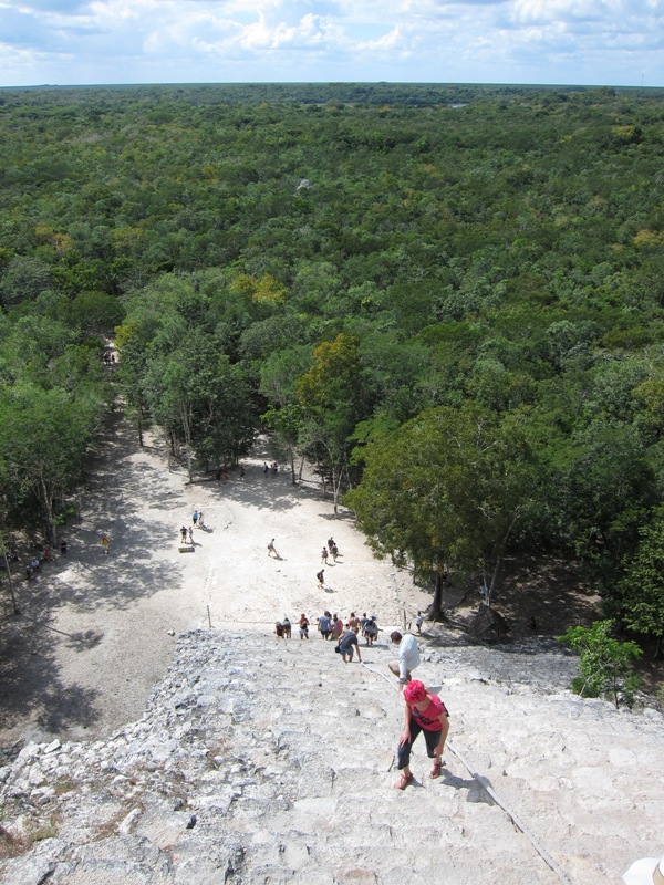 Cela ne nous empêchera pas de visiter le site à notre aise et d’escalader la pyramide de Nohoch Mul et profiter d’une vue magnifique sur la jungle environnante.
