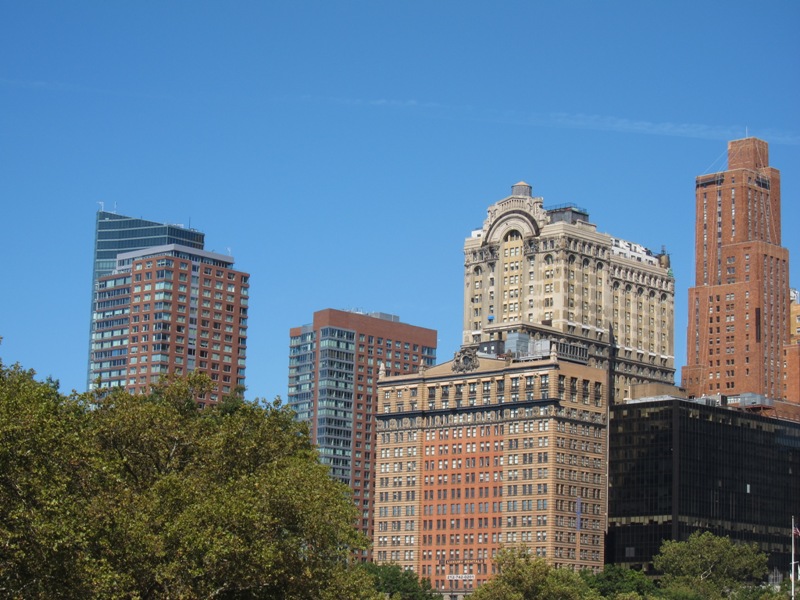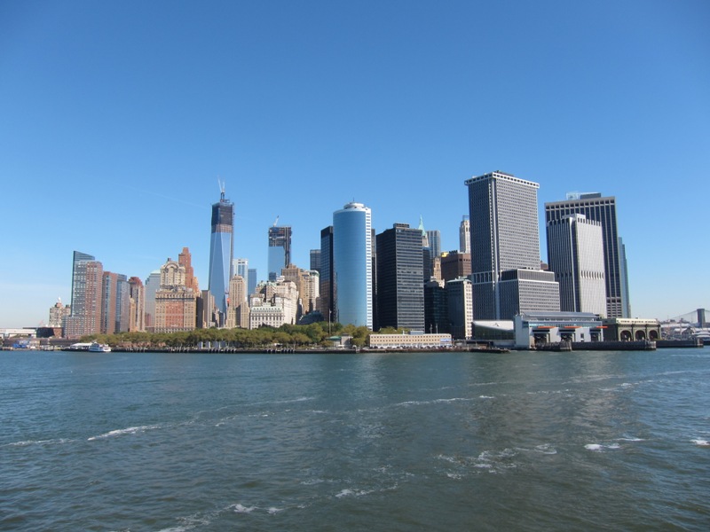 On profite au passage d’un chouette point de vue sur les buildings de Manhattan. On remarque d’ailleurs que les buildings refleurissent sur le site de Ground Zero où les tours jumelles se sont effondrées suite aux attentats du 11 septembre.