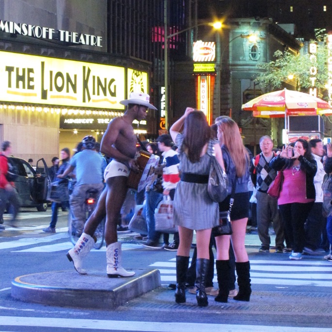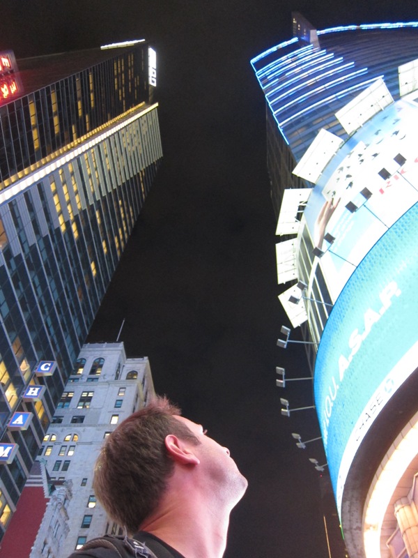 Nous rejoindrons ensuite Times Square où le spectacle son et lumière bat son plein à la tombée de la nuit. L’ambiance est totalement surréaliste… Les filles posent à côté de cowboys guitaristes à moitié nus, la pub défile en boucle sur des écrans ultra-géants, des animations divertissent les passants à tous les coins de rue… C’est du délire made in USA !
