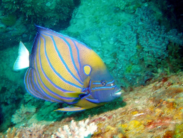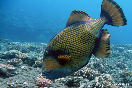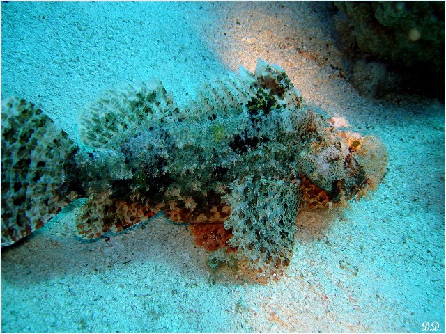 Nous verrons néanmoins quelques spécimens de belle taille tels que poisson perroquet à bosse, poisson-ange, poisson-lion, mérou brun, un couple de poisson-cocher et un poisson pierre. (Veuillez noter une fois de plus que ce ne sont pas mes photos)